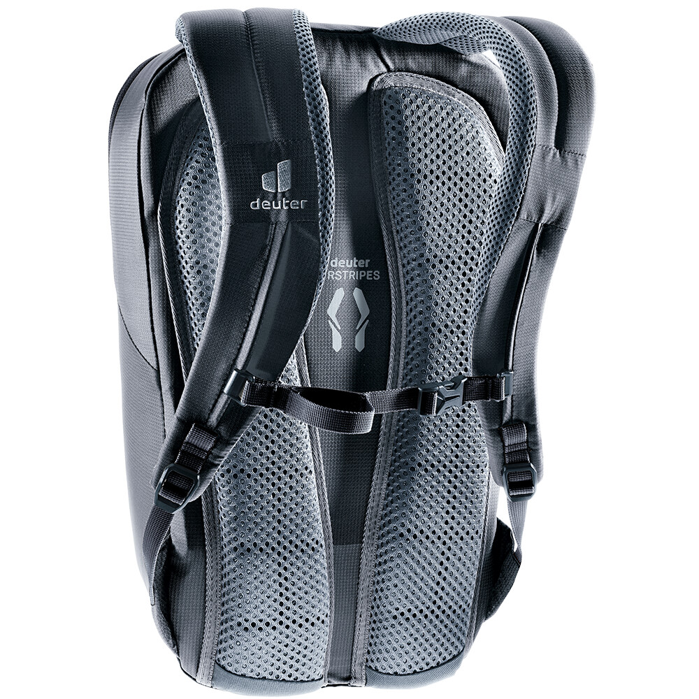 Plecak deuter Yort 15 ma aerodynamiczną ergonomię wyściółki pleców i systemu nośnego, aby zapewnić maksymalny komfort noszenia. Dzięki zmniejszonej powierzchni styku wyściółki pleców ze specjalnymi kanałami wentylacyjnymi między nimi i oddychającą siatką 3D, powietrze przepływa wydajnie. Jego komponenty zostały wyprodukowane przy użyciu przyjaznych dla środowiska i zasobooszczędnych procesów produkcyjnych, a materiał korpusu pochodzi w 50% z recyklingu. Plecak łatwo się wkłada dzięki łukowatemu zamknięciu. Wewnątrz plecaka znajduje się organizer, a także klips na klucze.