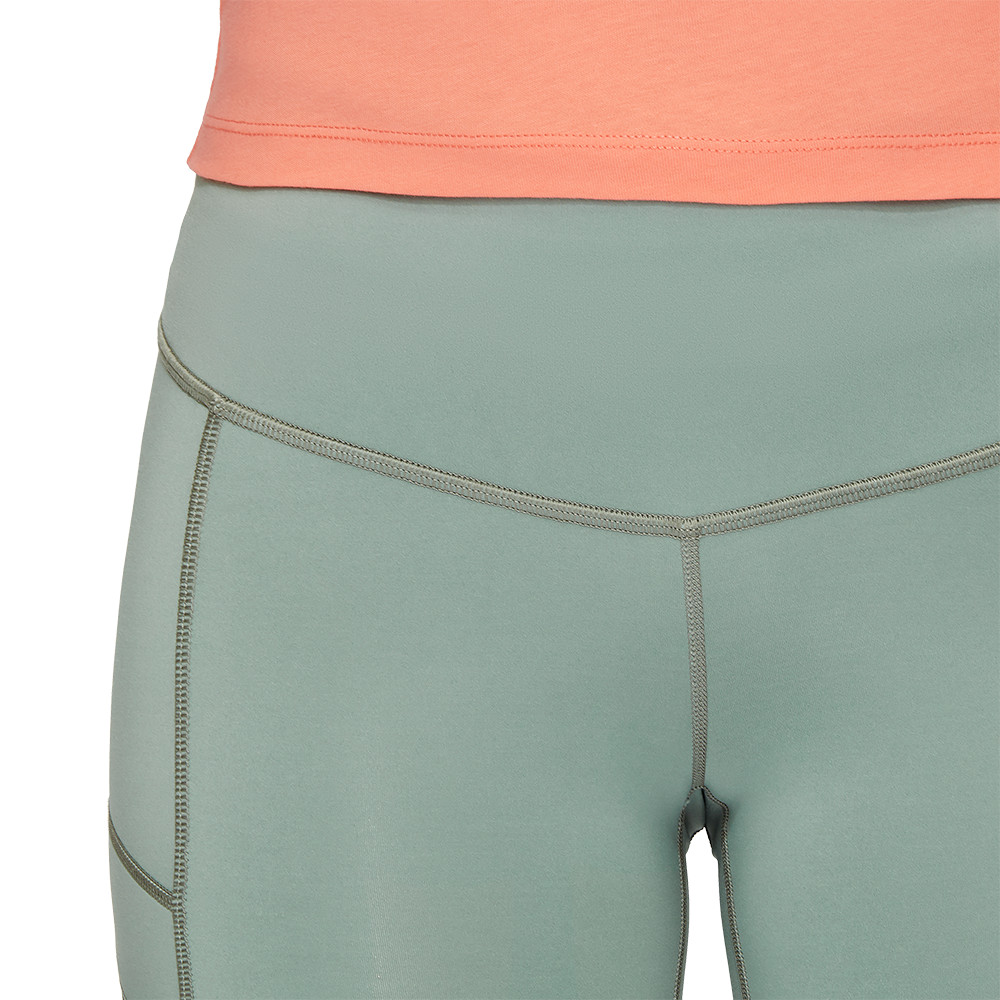 Wygodne damskie legginsy wykonane z materiału pochodzącego z recyklingu są elastyczne i wygodne dzięki szerokiej talii i płaskim szwom. Dobry wybór na wędrówki i relaks.